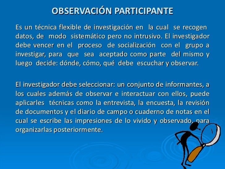 En la segunda hora de la clase se llevaron a cabo dos exposiciones que estaban programadas, la primera de ellas abordó el tema de la observación participante en donde me quedo claro que esta ha sido utilizada en varias disciplinas como instrumento en la investigación cualitativa para recoger datos sobre la gente, los procesos y las culturas. Es necesario entender este concepto ya que nos permite conocer las posturas del observador, además nos facilita aprender nuevas técnicas de observación que indudablemente son de gran utilidad para nosotros como estudiantes y para investigadores en formación. Algunos de los puntos clave de la presentación de nuestros compañeros fueron: